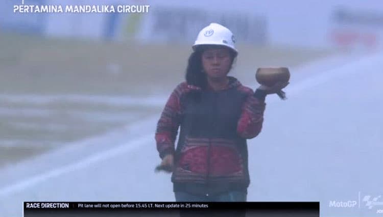 TIMES Boyolali/Raden Rara Isti Wulandari, sang pawang hujan saat Sirkuit Mandalika, Lombok Tengah, NTB, Minggu (20/3/2022) (FOTO: t-2.tstatic.net)