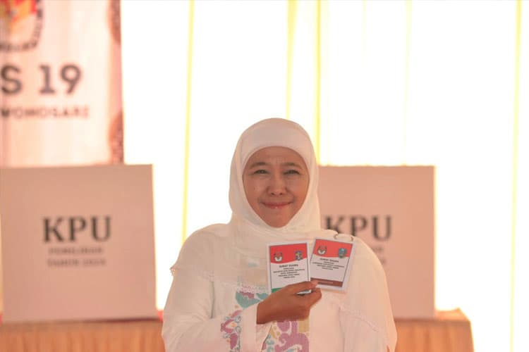 TIMES Boyolali/Calon Gubernur Jawa timur nomor urut dua Khofifah Indar Parawansa nyoblos menyalurkan hak suara di TPS 19 Kelurahan Jemur Wonosari Kecamatan Wonocolo, Kota Surabaya (FOTO: dok KIP)