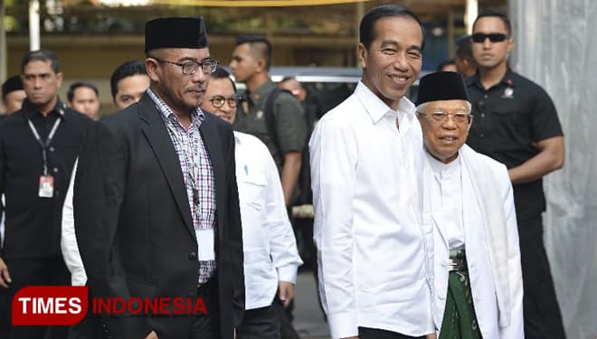 TIMES Boyolali/Presiden terpilih, Jokowi, saat tiba di Gedung KPU RI, Minggu (30/06/2019). (FOTO: Hasbullah/TIMES Indonesia).